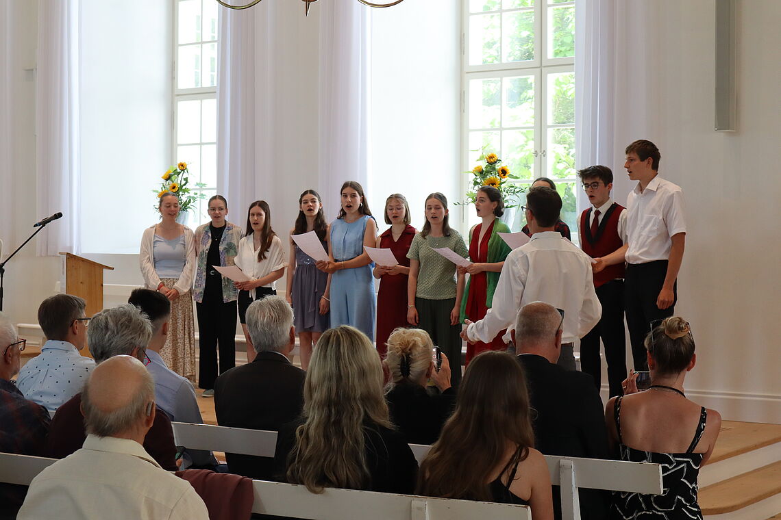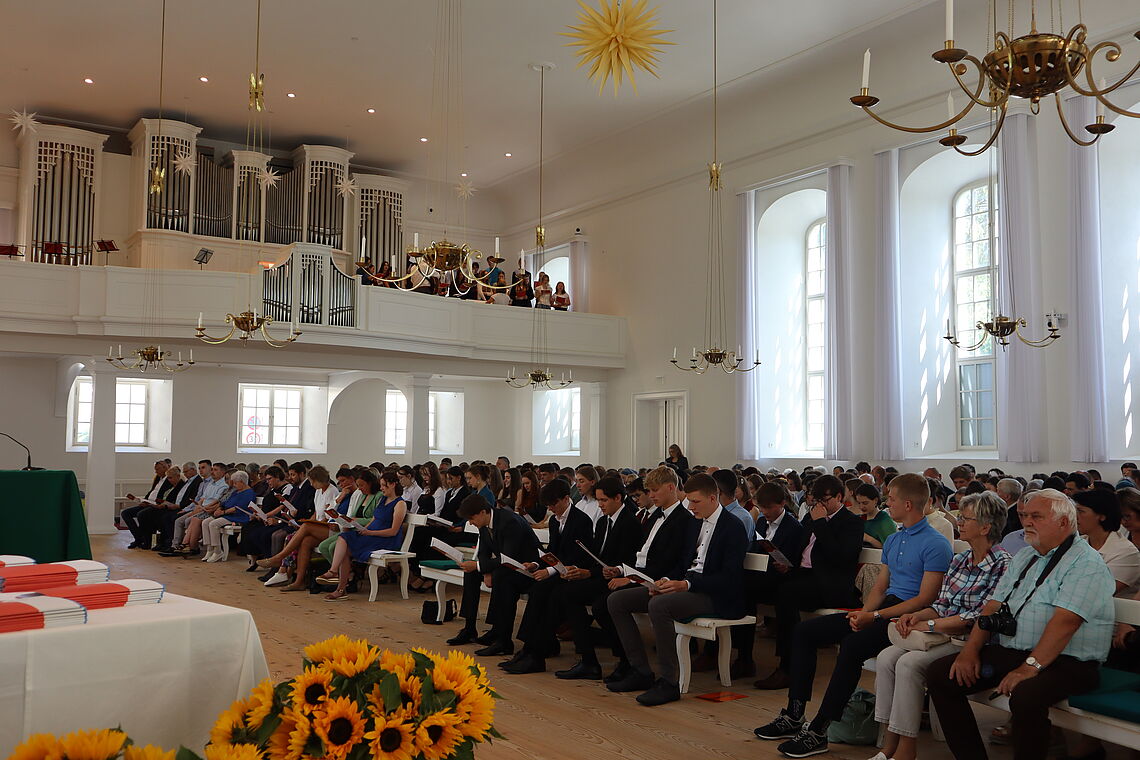 Am Sonnabend, dem 14. Juni, war es so weit: 43 Abiturientinnen und Abiturienten erhielten ihre Abiturzeugnisse bei einer feierlichen Zeugnisübergabe im Rahmen eines Gottesdienstes im Herrnhuter Kirchensaal. Der Jahrgang erreichte einen Notenschnitt von 2,05 - der bisher beste Durchschnitt eines Abiturjahrgangs an den Zinzendorfschulen Herrnhut. Zehn Abiturientinnen und Abiturienten erreichten eine Note von 1,5 und besser. Allen einen herzlichen Glückwunsch zu dieser tollen Leistung!