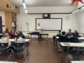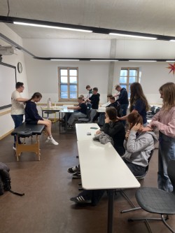 Die Azubis Paul und Pia von den Medischulen präsentierten den Beruf Physiotherapeut/in. Neben einer anschaulichen Präsentation konnten die Jugendlichen bei praktischen therapeutischen Übungen aktiv mitmachen. Zahlreiche Fragen wurden ausführlich beantwortet.