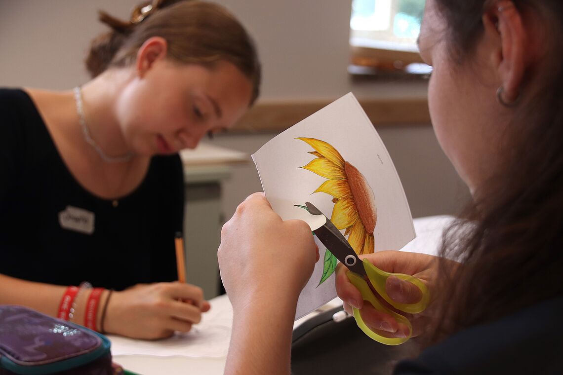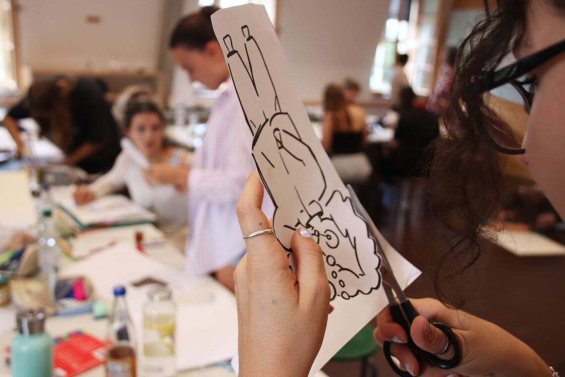 Den anfänglichen Input haben die Schülerinnen und Schüler durchweg als sehr wertvoll und nützlich empfunden. „Unsere Gesprächsrunden sind intensiv und der Motor für unsere künstlerische Arbeit“, erläutert die Kunst-Leistungskurslehrerin, die den Workshop in die Wege geleitet hatte.