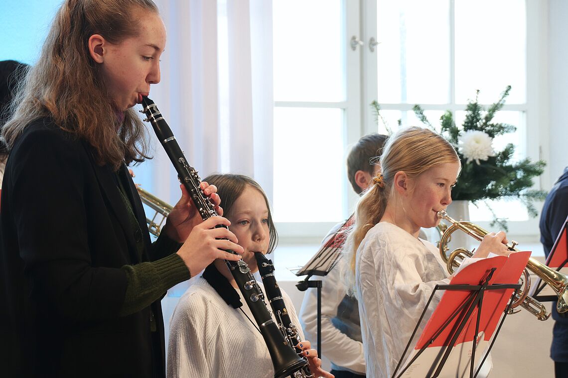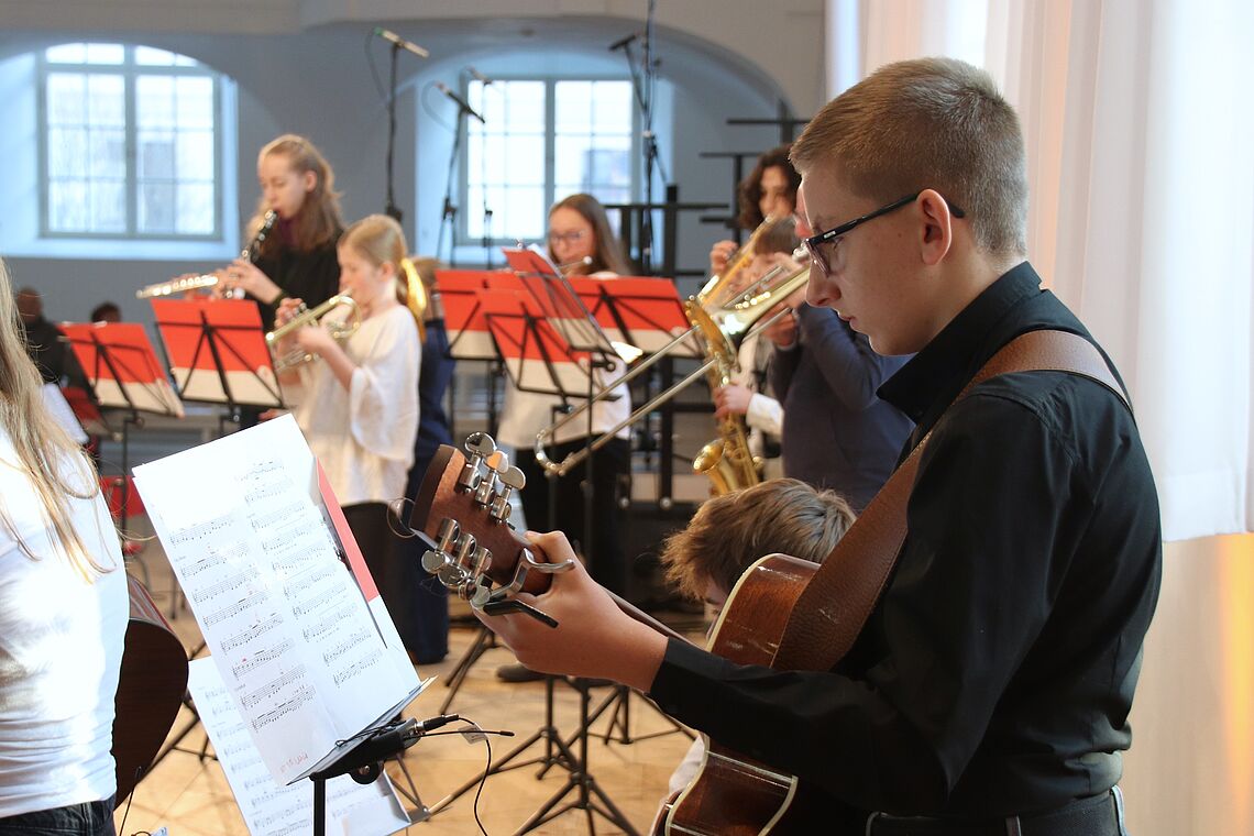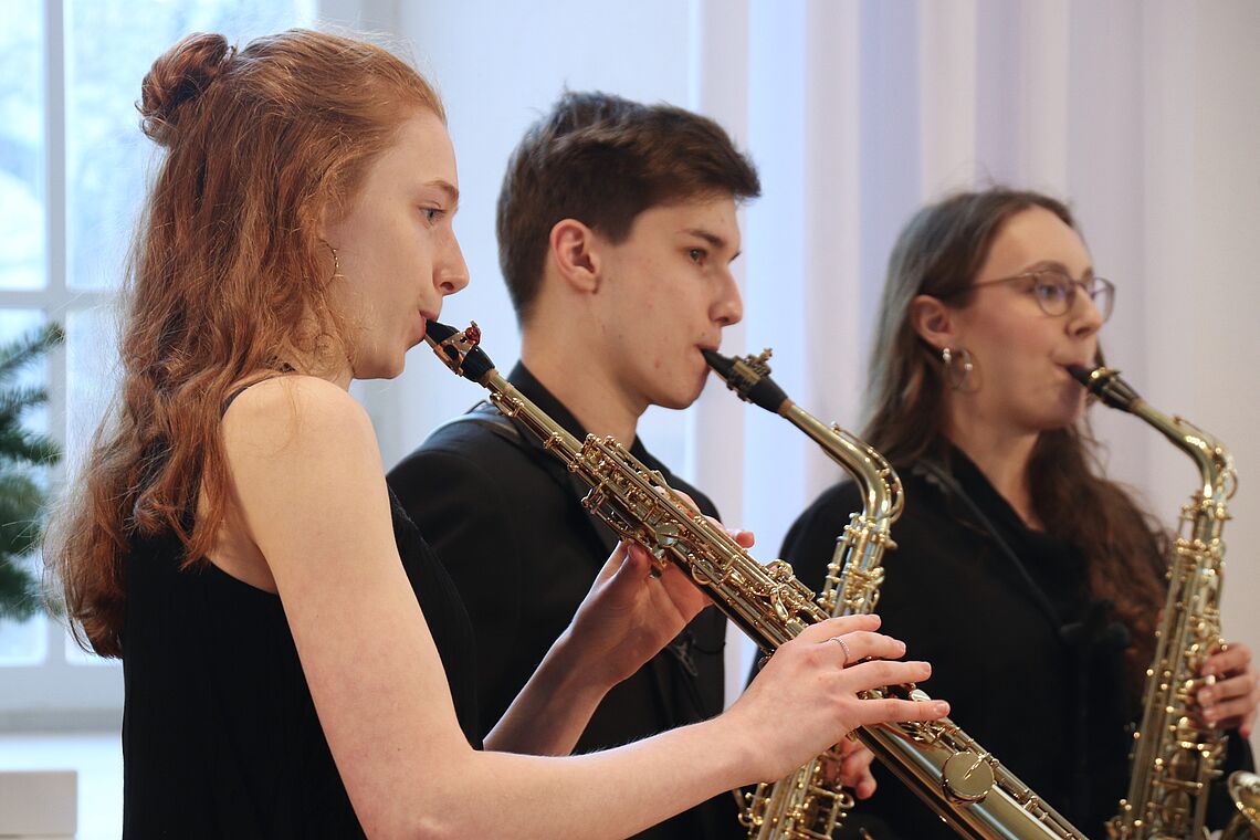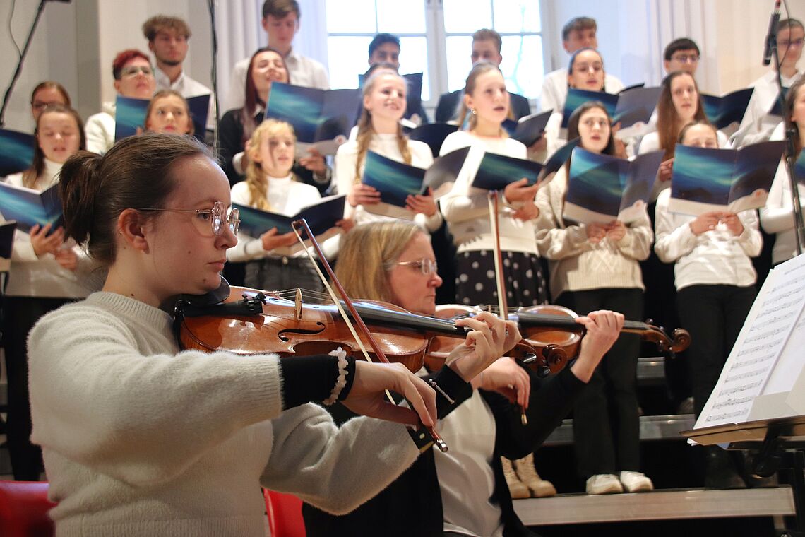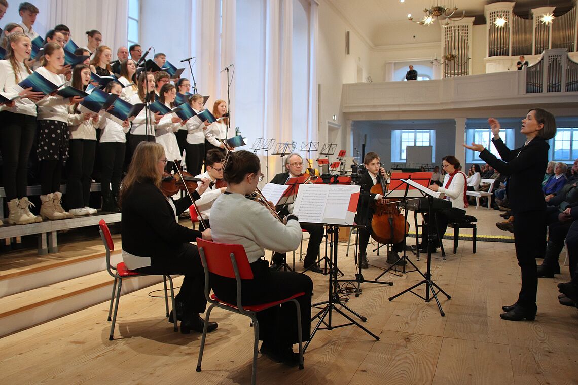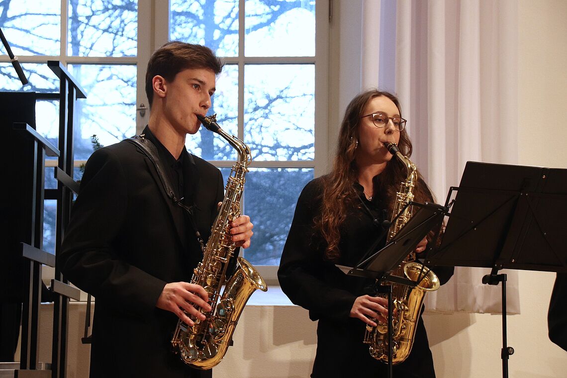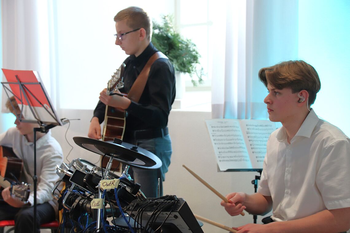 Es musizierten Solistinnen und Solisten der KMS mit Erika Haufe an der Orgel, das Saxophon-Ensemble der KMS unter der Leitung von Ragnar Schnitzler sowie Schulchor, Schulband und BrassBand der Evangelischen Zinzendorfschulen.