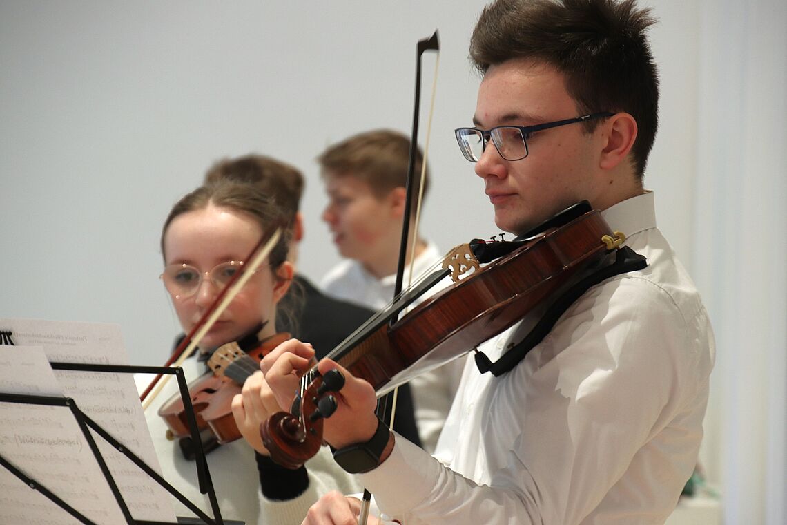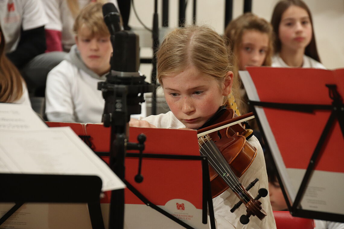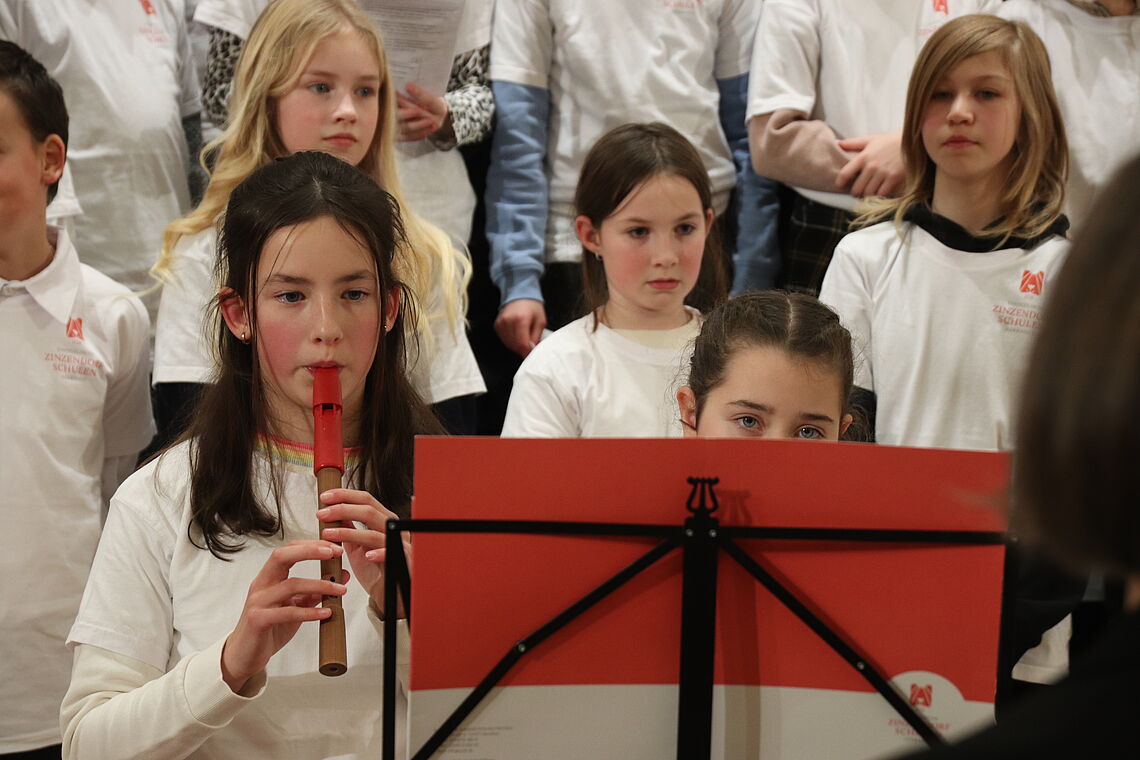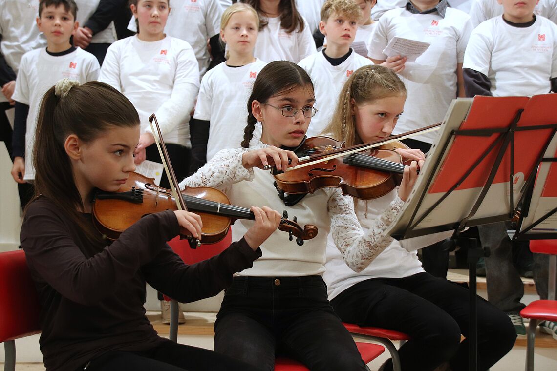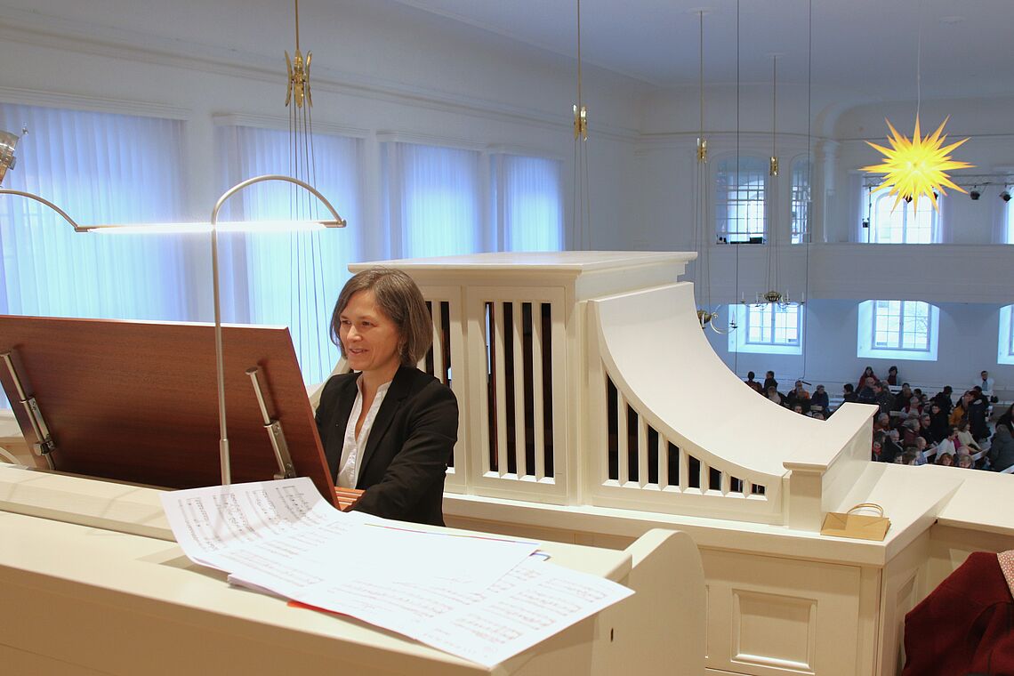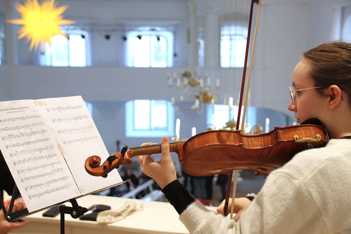 Es musizierten Solistinnen und Solisten der KMS mit Erika Haufe an der Orgel, das Saxophon-Ensemble der KMS unter der Leitung von Ragnar Schnitzler sowie Schulchor, Schulband und BrassBand der Evangelischen Zinzendorfschulen.