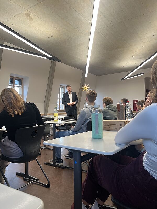 Am 10.12.2025 besuchte der CDU-Politiker Florian Oest die Klassen 10-3-1 und 10-3-2 an unserer Schule.