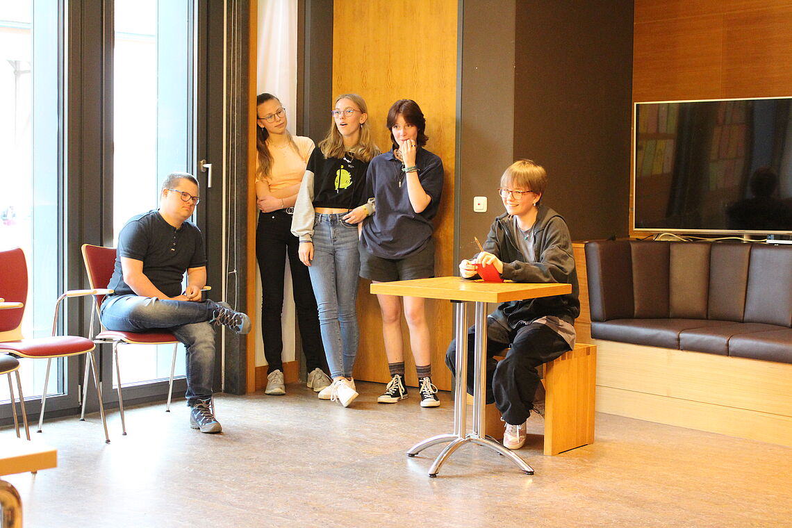 Vom 25. bis 28. April 2023 trafen sich 20 Schüler und Schülerinnen der Evangelischen Zinzendorfschulen Herrnhut und der Joahnn-Amos-Comenius-Schule Herrnhut im IBZ St. Marienthal zu einer besonderen Projektwoche. Sie stand unter dem Thema „Geschichten von Anne Frank“. Gemeinsam erarbeiteten die Jugendlichen ein Theaterstück basierend auf drei Kurzgeschichten der Schriftstellerin Anne Frank. Die Teilnehmenden spielten dabei nicht nur Theater, sondern erarbeiteten eigene Requisiten und erschufen eine eigene musikalische Umsetzung.