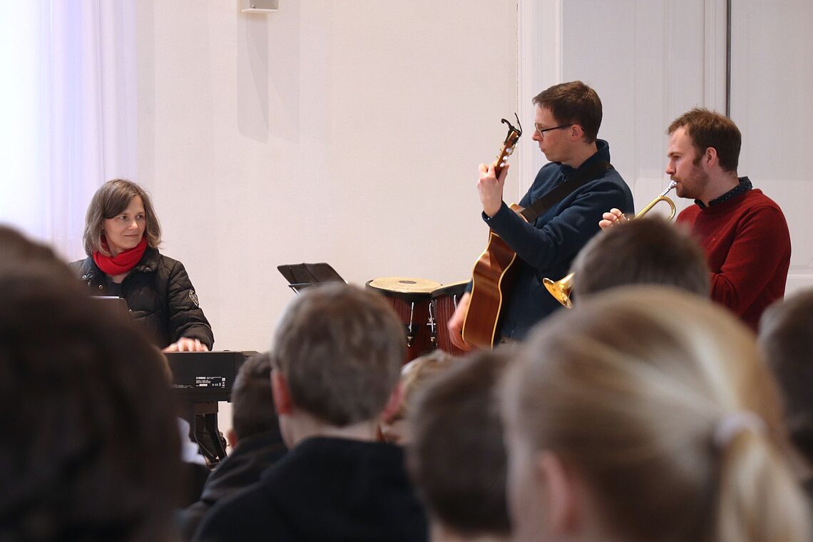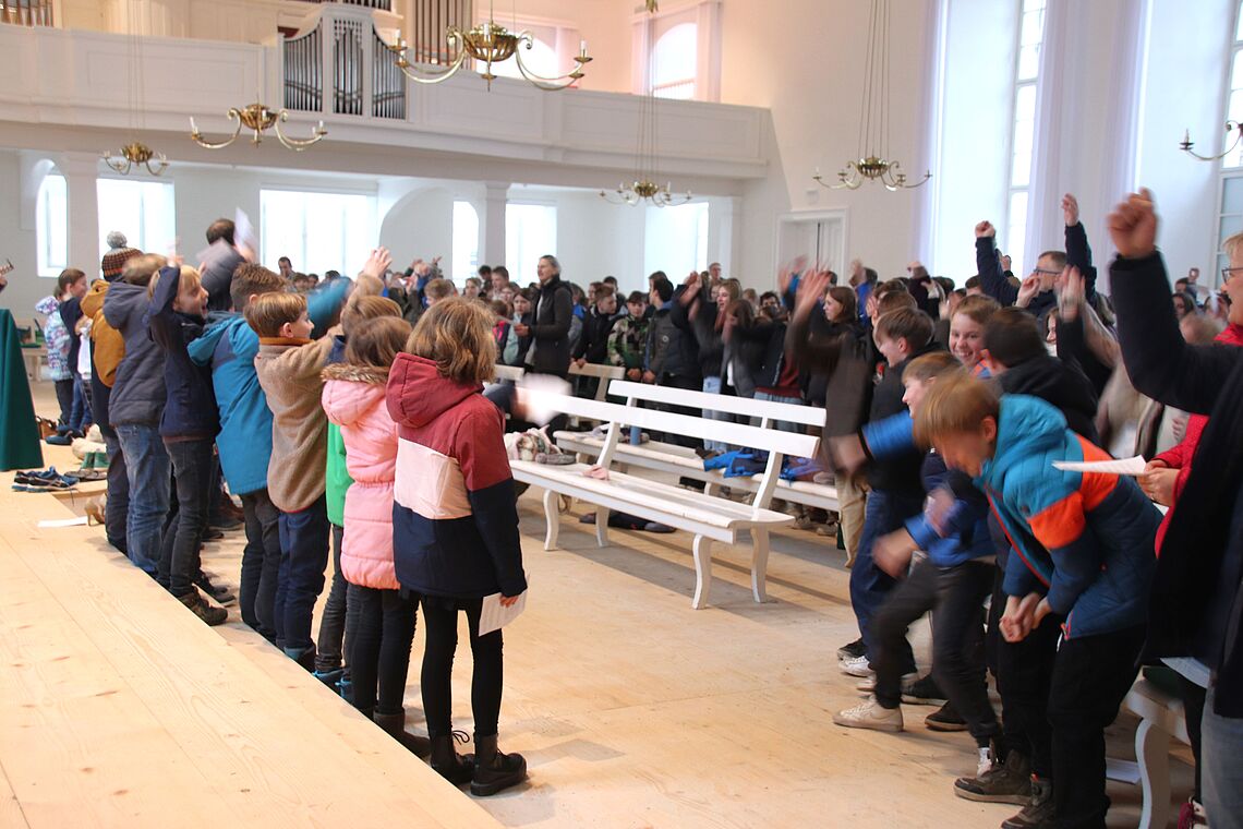 Der Gottesdienst fand in zwei Runden statt – ein Mal für unsere jüngeren Klassen und ein Mal für die älteren. Wie immer haben die Mitglieder unseres Schulpfarramtes die Botschaften des Gottesdienstes anschaulich, lebensnah und zielgruppenorientiert aufbereitet. Die musikalische Untermalung übernahmen die Fachschaft Musik und die Kantoren der Brüdergemeine. Ganz besonders beeindruckt hat dabei eine 11-jährige Schülerin, die ein am Klavier begleitetes Violinsolo aufführte.