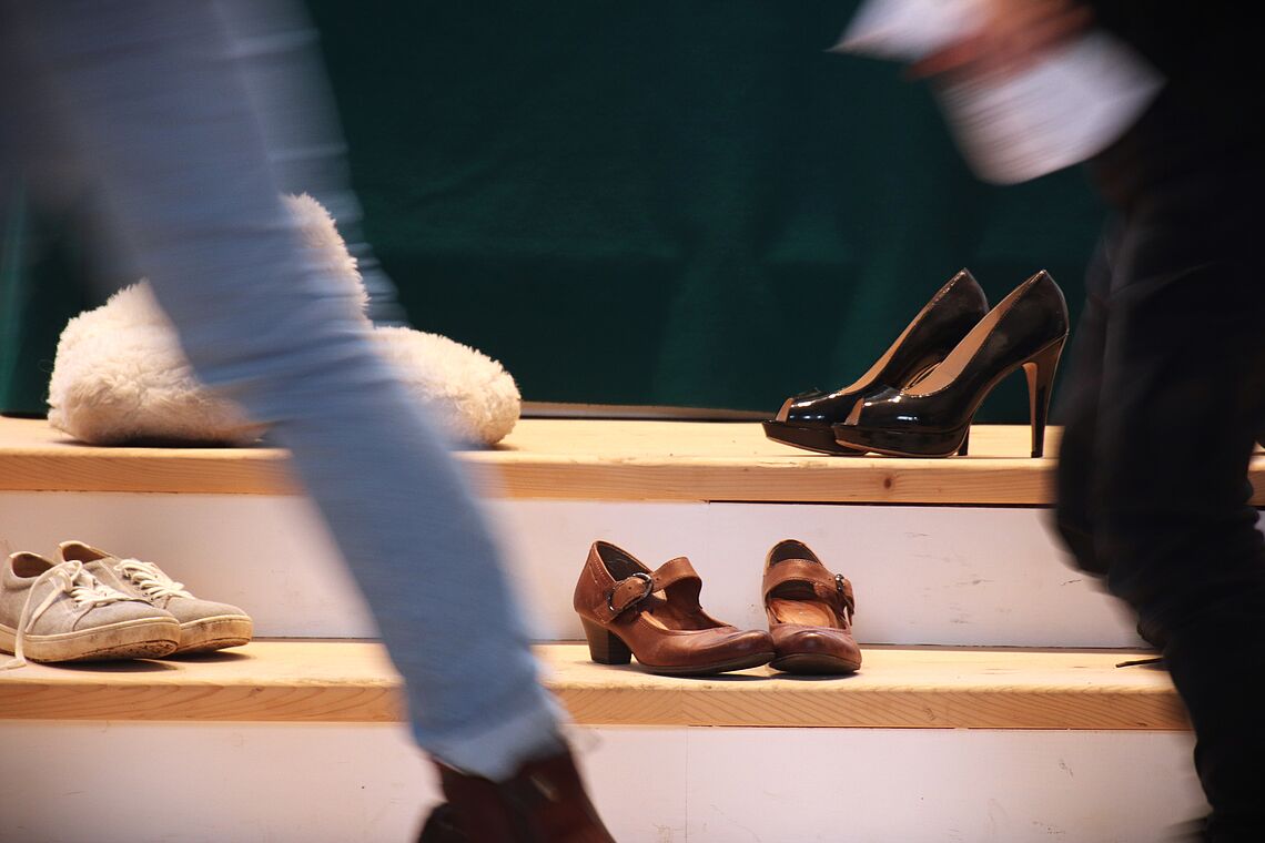 Was genau macht ein gut abgetragenes Paar Wanderschuhe auf dem Liturgietisch im Kirchensaal? Und nicht nur dorthin hatten sich für den Gottesdienst zum Abschluss des ersten Schulhalbjahres Schuhe verirrt. Vor dem Tisch versammelten sich weitere Fußbekleidungspaare für jede Gelegenheit, die unsere Schülerinnen und Schüler fragend zur Kenntnis nahmen: Wollige Kuschelhausschuhe für warme Füße im tiefsten Winter, Schuhe für besondere Anlässe wie High Heels und Lackschuhe, Sommerlatschen, Flip Flops, Sandalen, Gummistiefel und alle möglichen Arten von Sportschuhen.