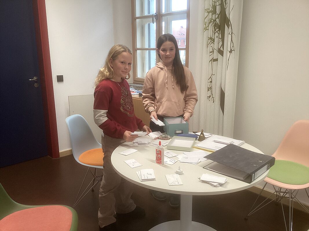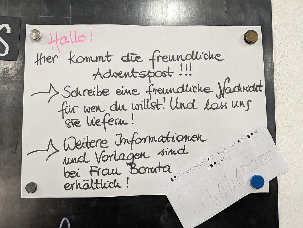 Die Schüler schreiben freundliche Briefe und die Schülerinnen der Schulpfarramtsgruppe schlüpft in die Rolle von Boten.