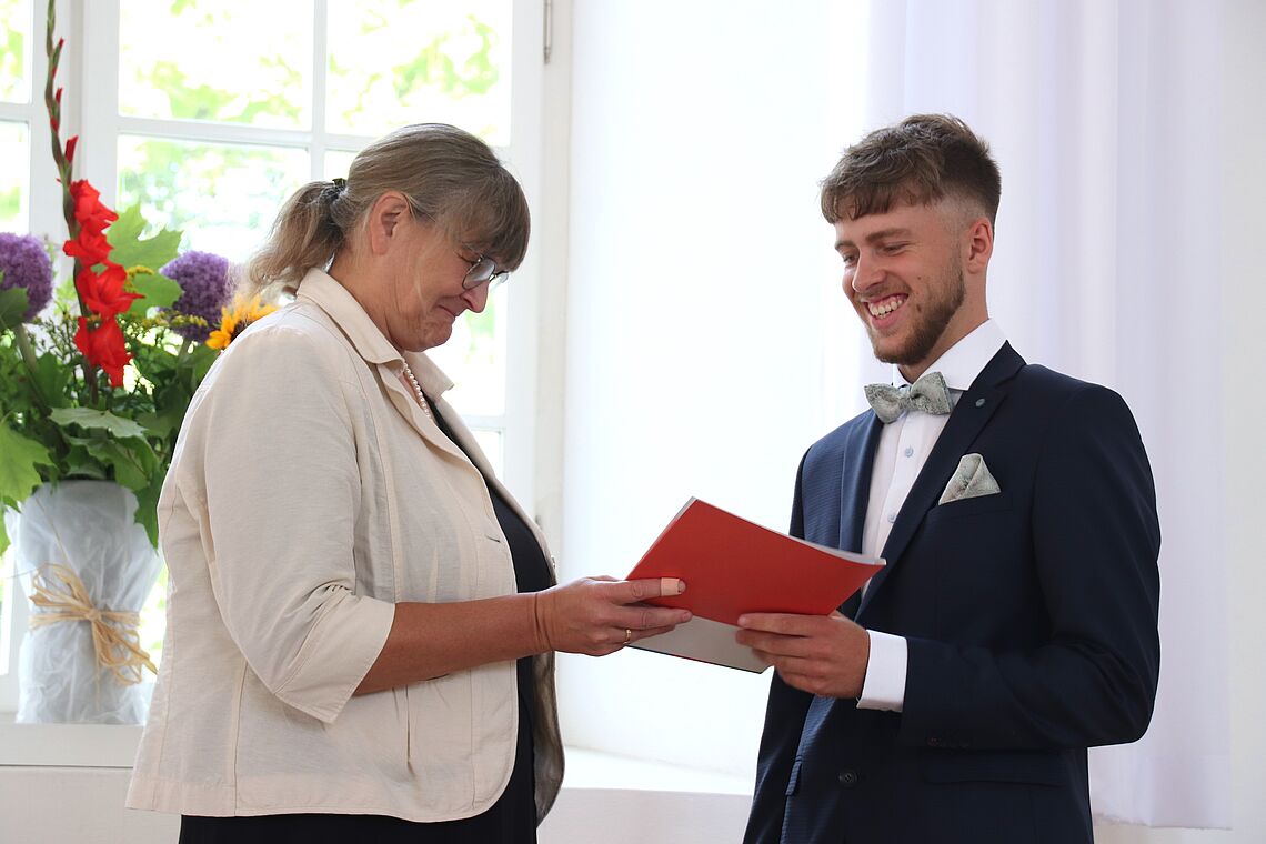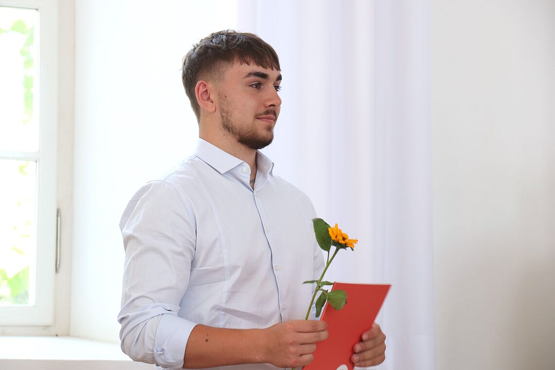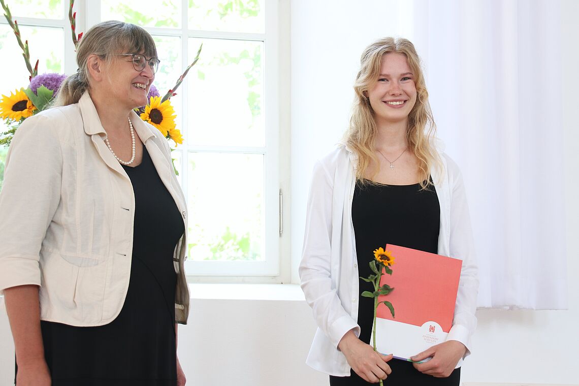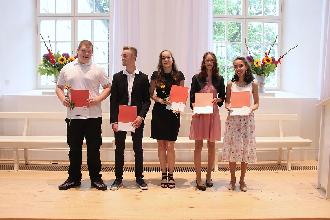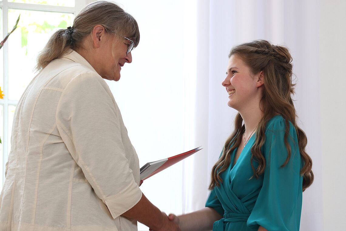 Auch die Schulleitung und die Absolventinnen und Absolventen selbst kamen zu Wort. In ihren Ansprachen, die insbesondere ihre Dankbarkeit zum Ausdruck brachten, erinnerten sie an außergewöhnliche, erfreuliche, aber auch turbulente Ereignisse, über die rückblickend geschmunzelt werden konnte. Besondere Ehrung erfuhren 5 Schülerinnen und Schüler des Abiturjahrganges, die ihren Abschluss mit einer 1 absolviert haben, darunter Hannah Totz, die die Bestnote 1,0 erzielt hat. Ebenfalls sehr bemerkenswert und Grund zur Freude: Vier der fünf Hauptschulabsolventinnen und -absolventen haben einen Qualifizierenden Hauptschulabschluss geschafft.
