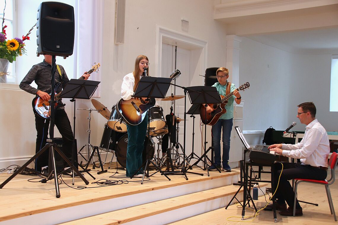 Musikalisch untermalt wurden die Gottesdienste von der Schulband, dem Schulchor, dem Grundkurs Musik der Klasse 11 und Instrumentalstücken für Trompete und Orgel. Bei der Zeugnisausgabe für die Ober- und Hauptschulabsolventinnen und -absolventen sangen die Klassenlehrerin der 10-3/2 und unser Musikreferendar ein Duett, das ermutigt, eigene Wege zu gehen und die Welt aktiv mitzugestalten.