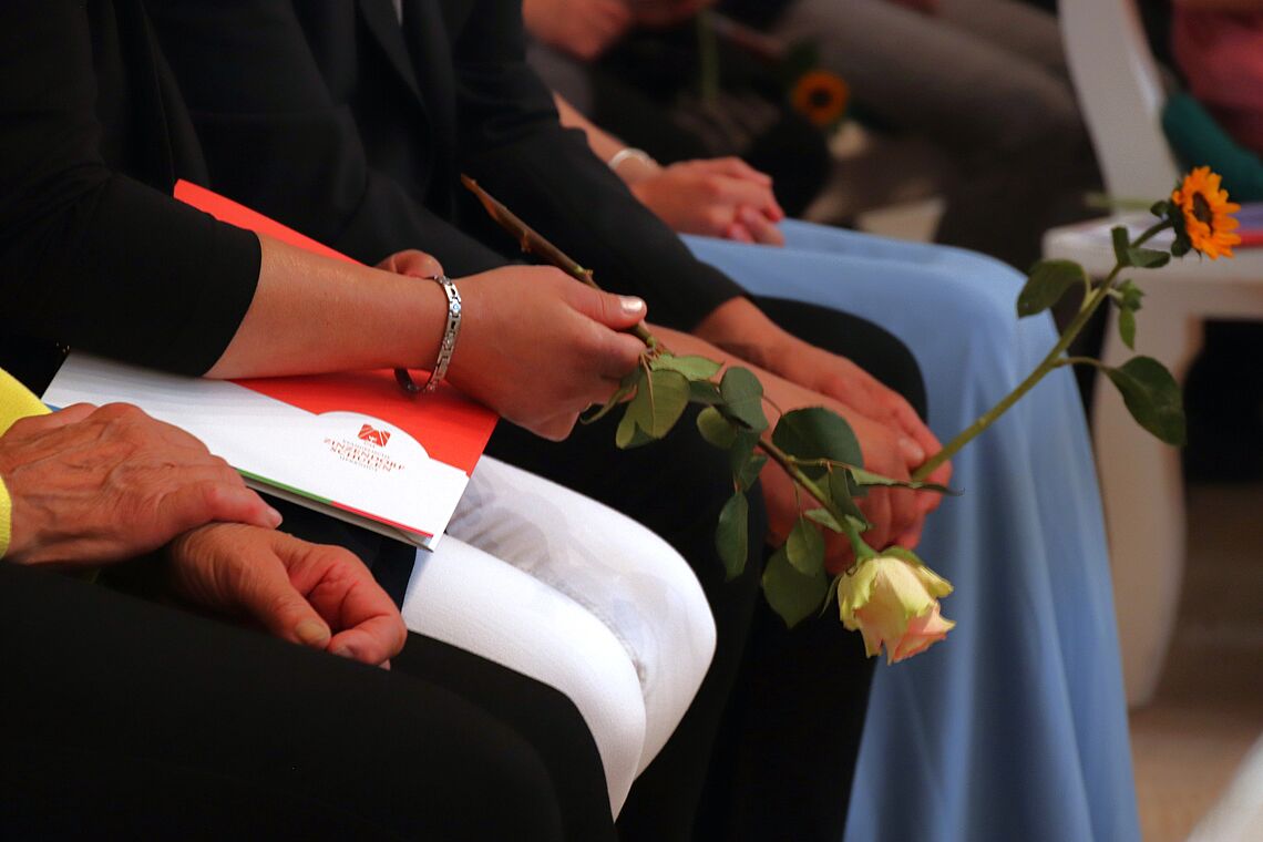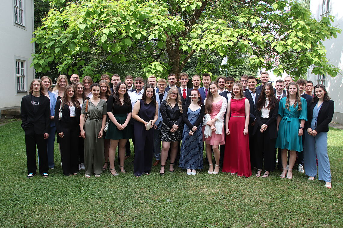 „Acht Jahre Gymnasium sind nun vorbei. Acht Jahre voller schöner Momente, wie zum Beispiel unsere Kursfahrt nach Italien, acht Jahre Mathe- und Physikformeln lernen um sie dann wieder zu vergessen, aber auch acht Jahre jeden Tag über sich hinauswachsen und Erfahrungen sammeln.“ So beginnt eines der Statements, mit dem die Abiturientinnen und Abiturienten auf ihre Schulzeit zurückblicken und sich aus der Schulgemeinschaft und voneinander verabschieden, während sie ihre Zeugnisse erhalten.