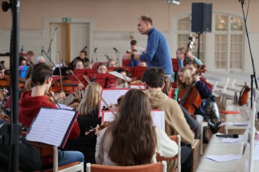 Bereits am Dienstagmorgen begannen die Proben der bunten Ensemble aus Chören, Bands und Orchestern im Kirchensaal, den Musiksälen und im Saal des Hauses Katharina von Gersdorf. Die jungen Musiker*innen arbeiten intensiv an ihrem Programm – und obwohl viele Stücke schon jetzt beeindruckend klingen, ist es für die Chor- und Orchesterleiter*innen eine spannende Herausforderung, aus den beiden Ensembles einen harmonischen Klangkörper zu formen. Viele Teilnehmende kennen sich bereits von der gemeinsamen Musikwoche in Herrnhut vor eineinhalb Jahren, was die Zusammenarbeit besonders bereichert.