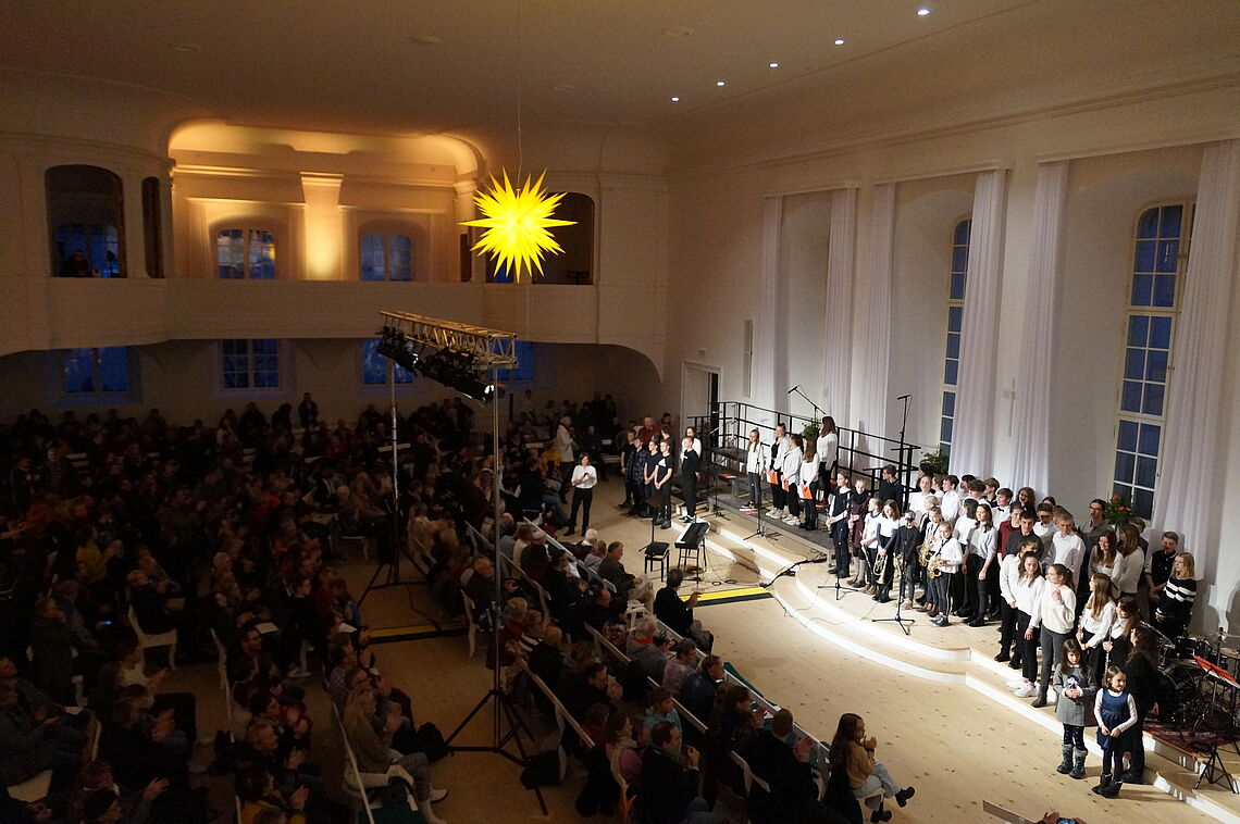 Das Adventskonzert – traditionell am Samstag vor dem ersten Advent – lockt jedes Jahr unzählige Besucherinnen und Besucher in den Herrnhuter Kirchensaal. Das ambitionierte und abwechslungsreiche Programm vereinte diesmal traditionelle Weisen, Gospel sowie klassische und moderne Stücke. Diese wurden vom Schulchor, der Schul- und der Brassband der Zinzendorfschulen sowie von Solistinnen und Solisten der Kreismusikschule Dreiländereck dargeboten.
