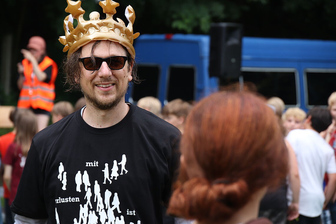 Unter dem Abi-Motto “Mit Verlusten ist zu rechnen“ – entstanden auf der Klassenfahrt nach Italien, wo nicht alle Mitglieder der Reisegruppe die vereinbarten Treffpunkte immer rechtzeitig wiedergefunden haben – hat die gesamte Schule das Ende der Schulzeit unserer 12er gefeiert.