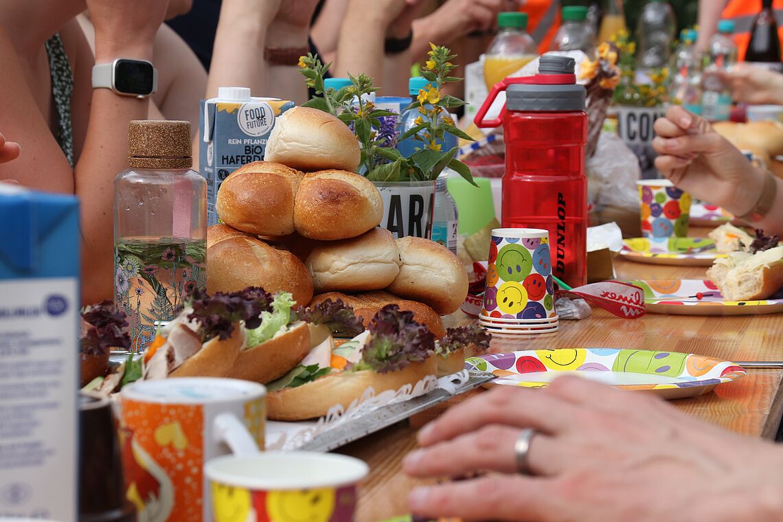 Auch die Lehrerinnen und Lehrer kamen nicht zu kurz beim Abi-Streich. Da war die Quizrunde, in der unter anderem Fragen wie: Wie viel Zeit hat die dafür zuständige Schülerin für die Gestaltung der Abi-Zeitung aufgewandt? beantwortet werden mussten. Am legendärsten war aber sicherlich das Rap-Battle zwischen zwei Lehrern und zwei Lehrerinnen, die, entsprechend verkleidet, den Wettbewerbcharakter des Battles unterhaltsam ernst nahmen. Einen Dank an die Lehrkräfte für die gesamte Schulzeit der 12er an den EZSH gab es auch - in Form eines üppigen Frühstücksbuffets.
