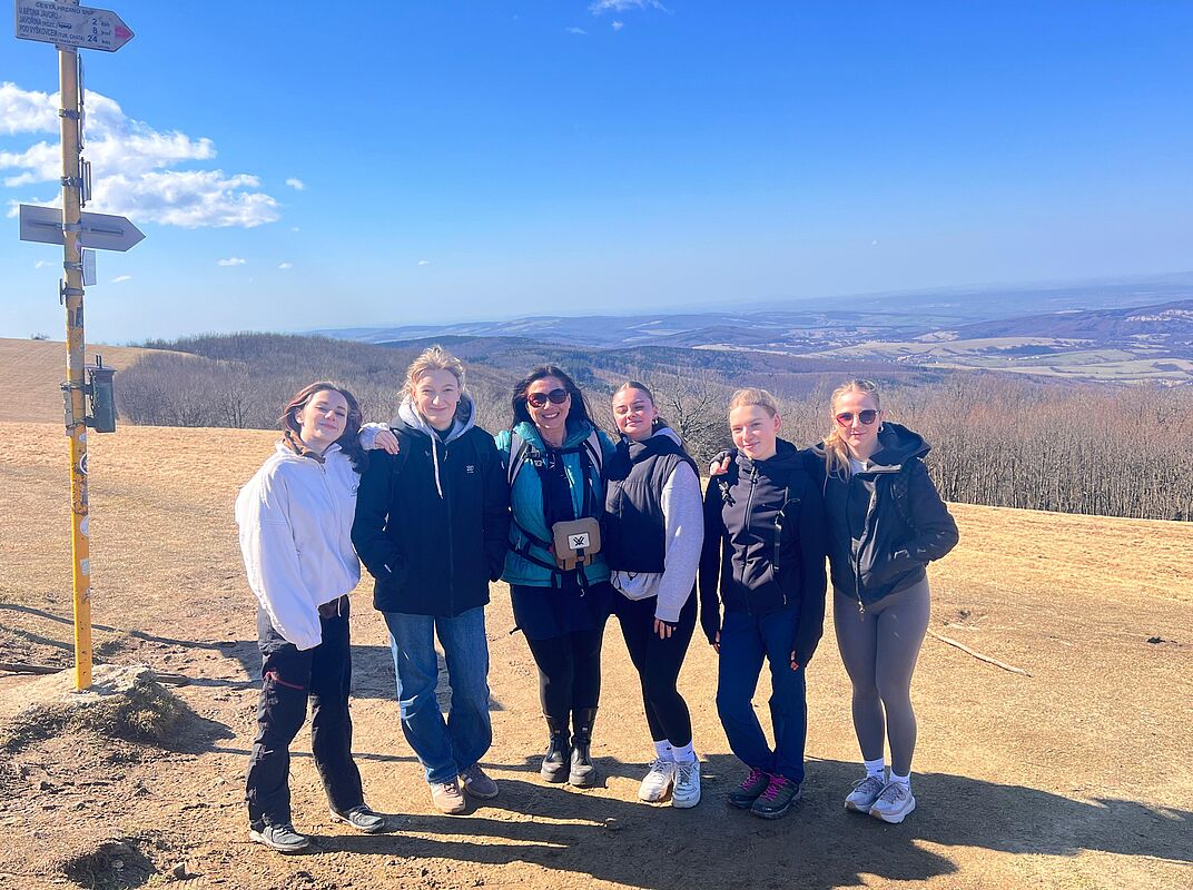 Der Donnerstag war unser „Wander- und Manufakturtag. Nach einem gemeinschaftlichen Frühstück in der Schulkantine machten wir uns auf den Weg zum höchsten Gipfel der Weißen Karpaten. Die Strecke war zwar anspruchsvoll, doch die grandiose Aussicht von dort ließ den Aufwand schnelle vergessen. Nach dem Mittagessen in einer Gaststätte in Květná (dem Ort am Fuße des Berges) besichtigten wir außerdem eine kleine Glasmanufaktur, in der man teilweise selbst einen Vogel oder ein anderes Tier gestalten konnte. Die tschechischen ebenso wie die deutschen Teilnehmender waren begeistert.