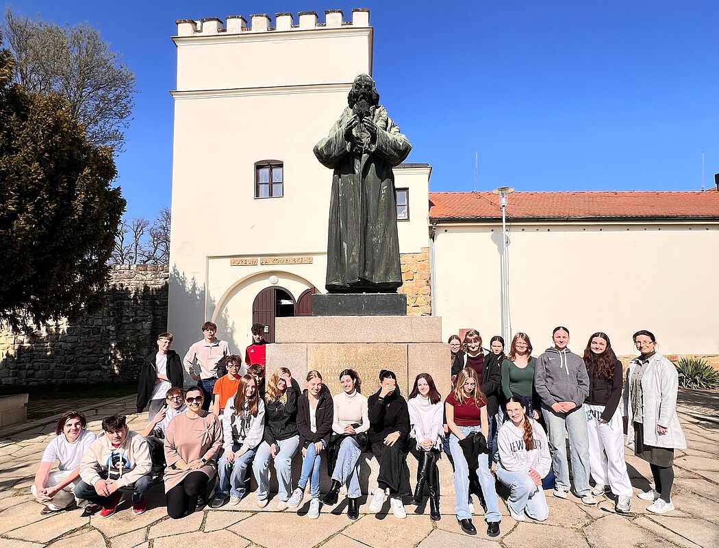 Am Mittwoch stand nach dem Unterricht auch der Besuch des Museums von Jan Amos Komenský auf dem Programm. Dieser große Denker des 17. Jahrhunderts verbrachte seine Kindheit in dieser Stadt. Anschließend durften wir noch am Training der Folkloregruppe „Jakub“ teilnehmen und einige mährische Tänze ausprobieren.