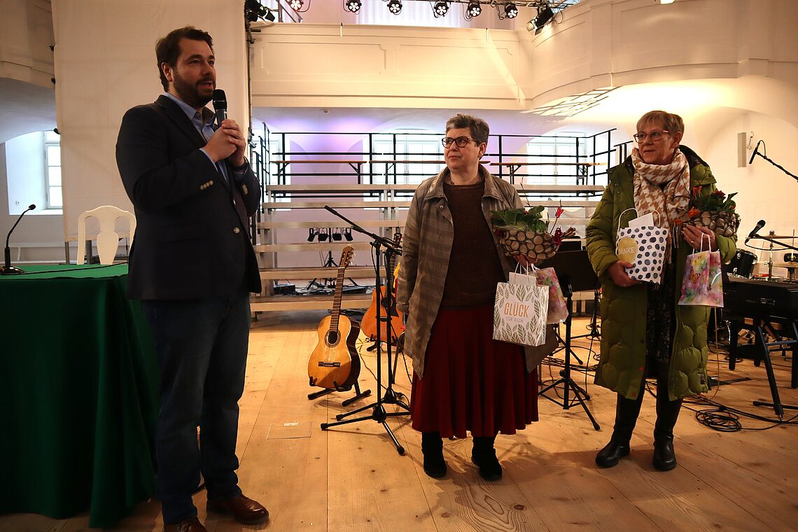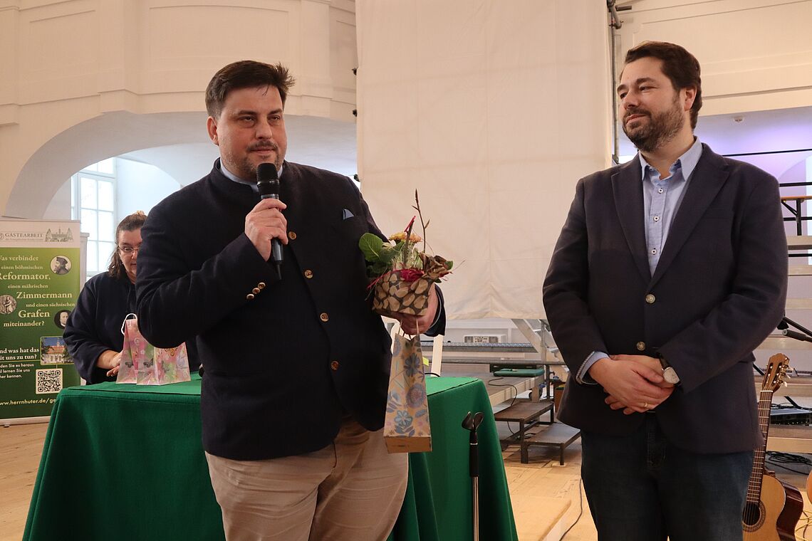 Im Rahmen des Schulgottesdienstes wurden die Klassen 6-2 und 10-3 für die meisten vermittelten Spendenstollen geehrt und erhielten eine Urkunde sowie einen Gutschein. Außerdem wurden 4 Lehrer und Mitarbeiter der Zinzendorfschulen mit Dankesworten und großem Applaus verabschiedet: Herr Vlasák (Religion) und Herr Rabel (Mathematik, Geografie) – beide seit eineinhalb Jahren aushilfsweis bzw. als Elternzeitvertretung bei uns tätig – bedankten sich auch ihrerseits bei der Schulgemeinschaft der Zinzendorfschulen. Wir sind sehr dankbar für die Unterstützung der beiden Kollegen. Außerdem wurden die beiden langjährigen Mitarbeiterinnen der Zinzendorfschulen Frau Hänsel (Sekretariat) und Frau Eichler (Buchhaltung) mit einem riesengroßen Dank und guten Wünschen in den Ruhestand verabschiedet. Der Chor sang als Segenslied „Dona nobis pacem“.