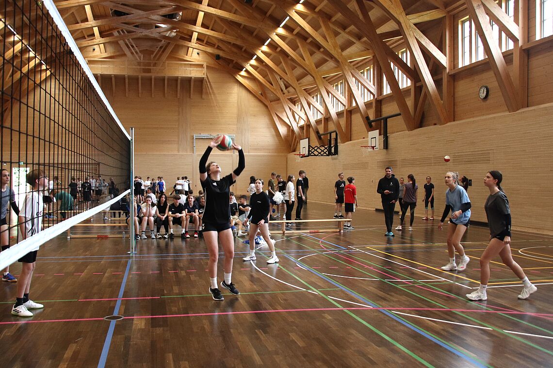 Der letzte Montag in diesem Schuljahr stand ganz und gar im Zeichen von gemeinsamer Bewegung und sportlichem Miteinander. Bei Volleyball, Basketball, Schach, Leichtathletik und anderen Sportarten haben sich die Klassen untereinander in Sachen Sportlichkeit und Teamwork gemessen.