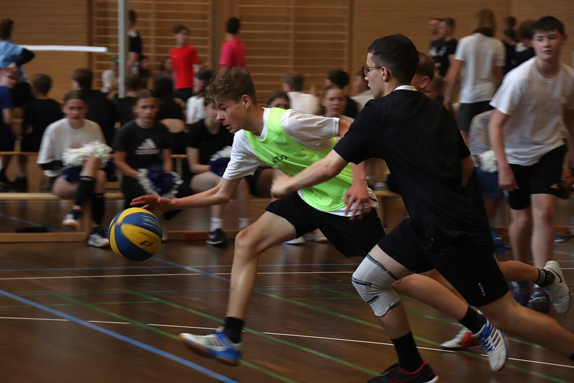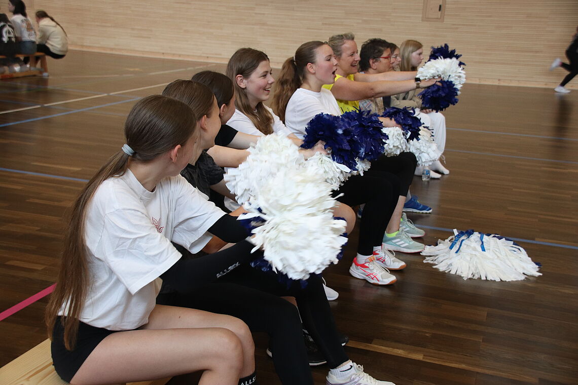 Schülerinnen und Schüler, die gerade Spielpause hatten, haben von den Seitenlinien aus ihre Mannschaften angefeuert, oft mit Unterstützung ihrer Klassenleiterin oder ihres Klassenleiters. Die 11er haben die Schiedsgerichte gestellt und fürs leibliche Wohl gesorgt.