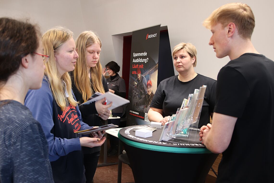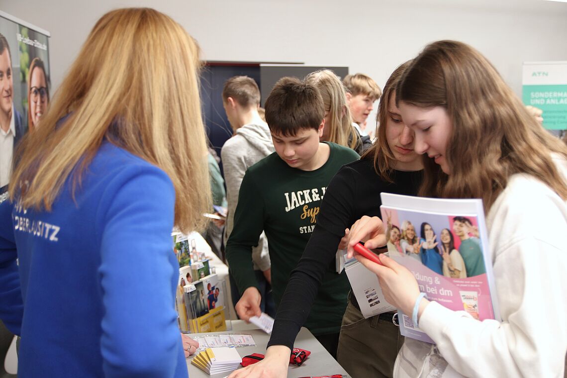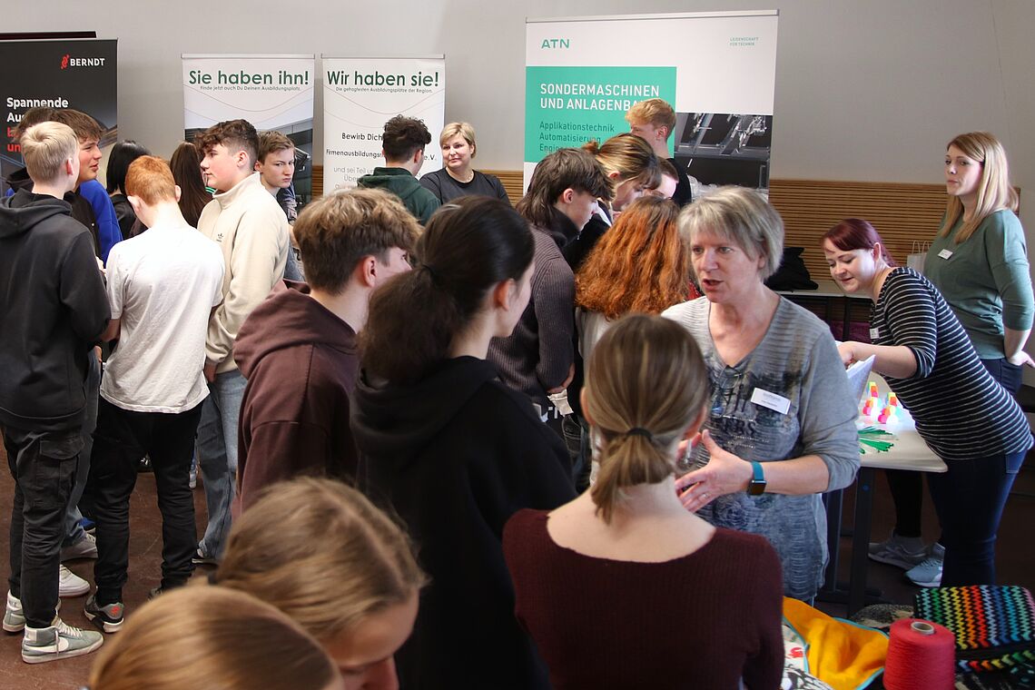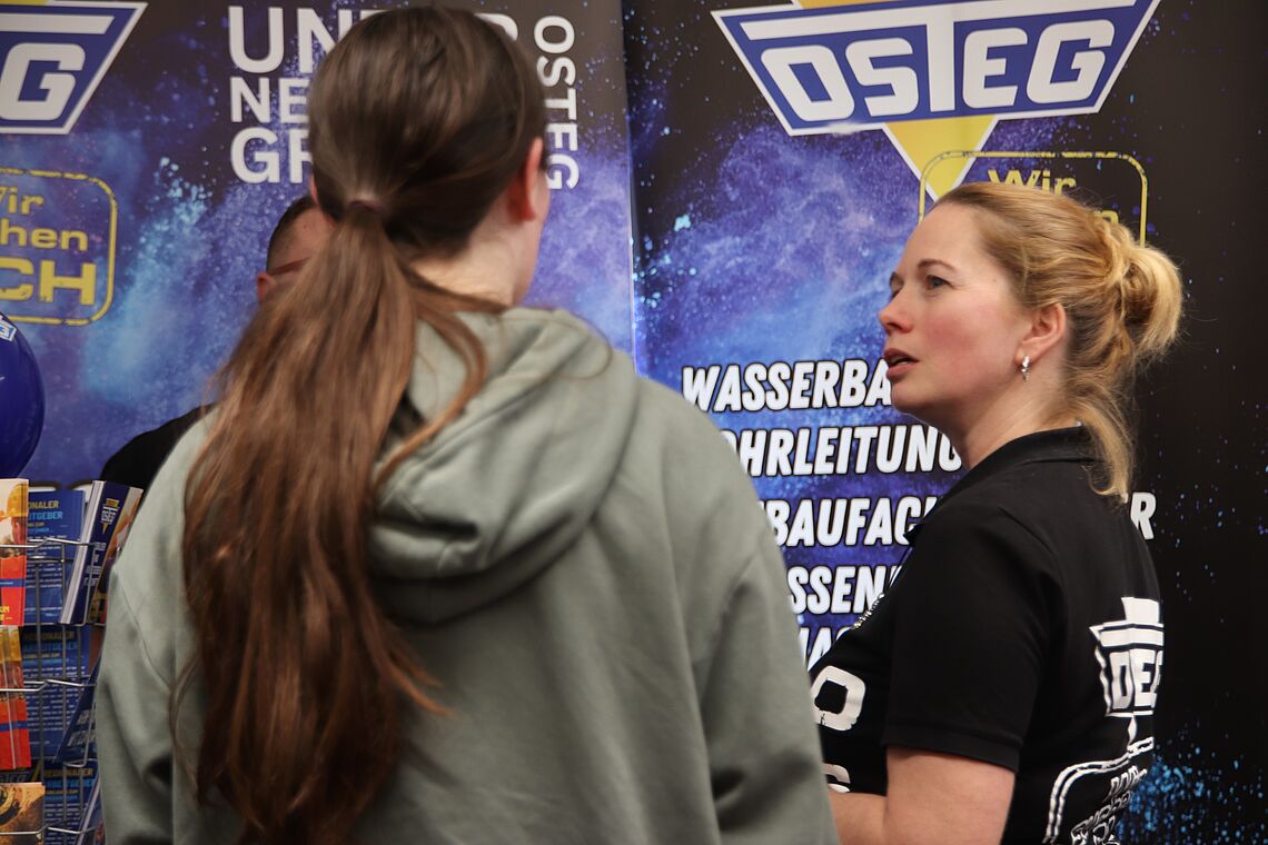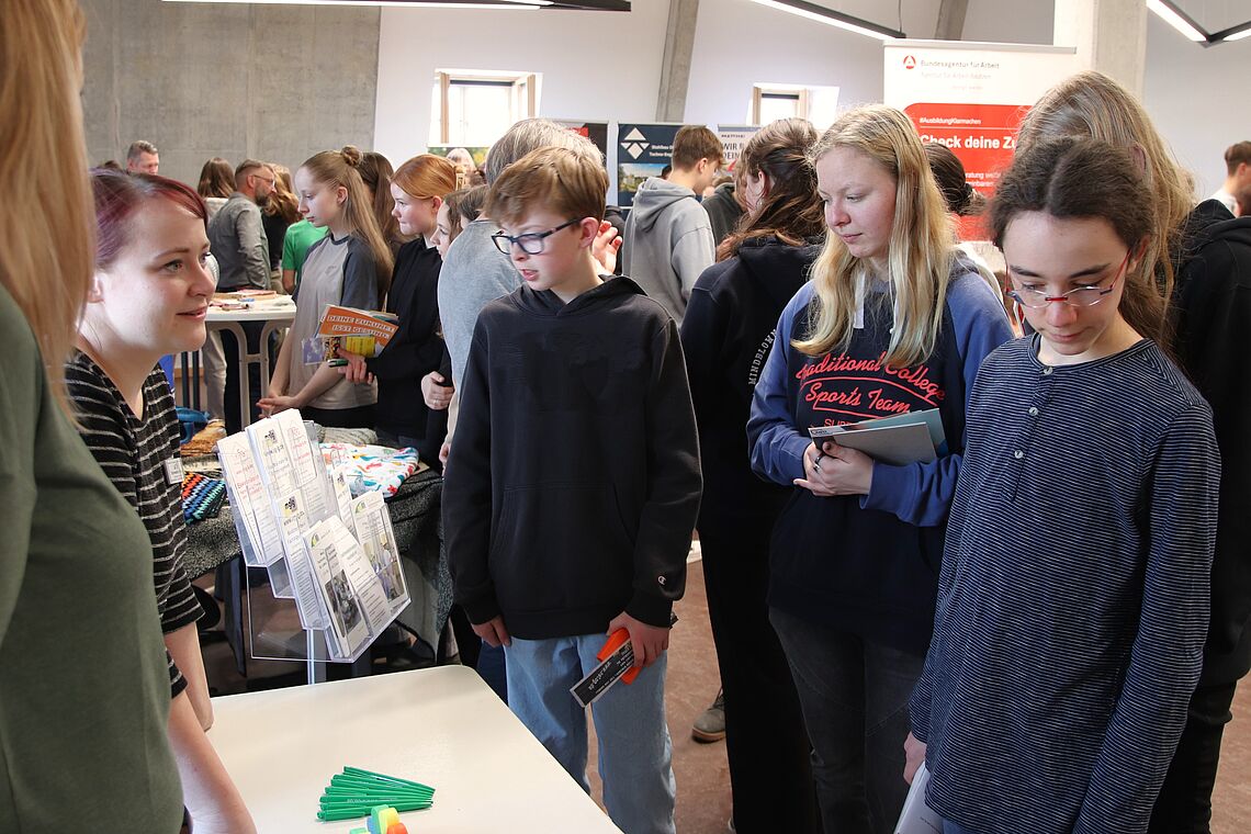 Kurz darauf folgte eine kleine Ausbildungsmesse direkt bei uns im Schulhaus mit Vertreterinnen und Vertretern von vielen regionalen Unternehmen. Unter anderem mit dabei: