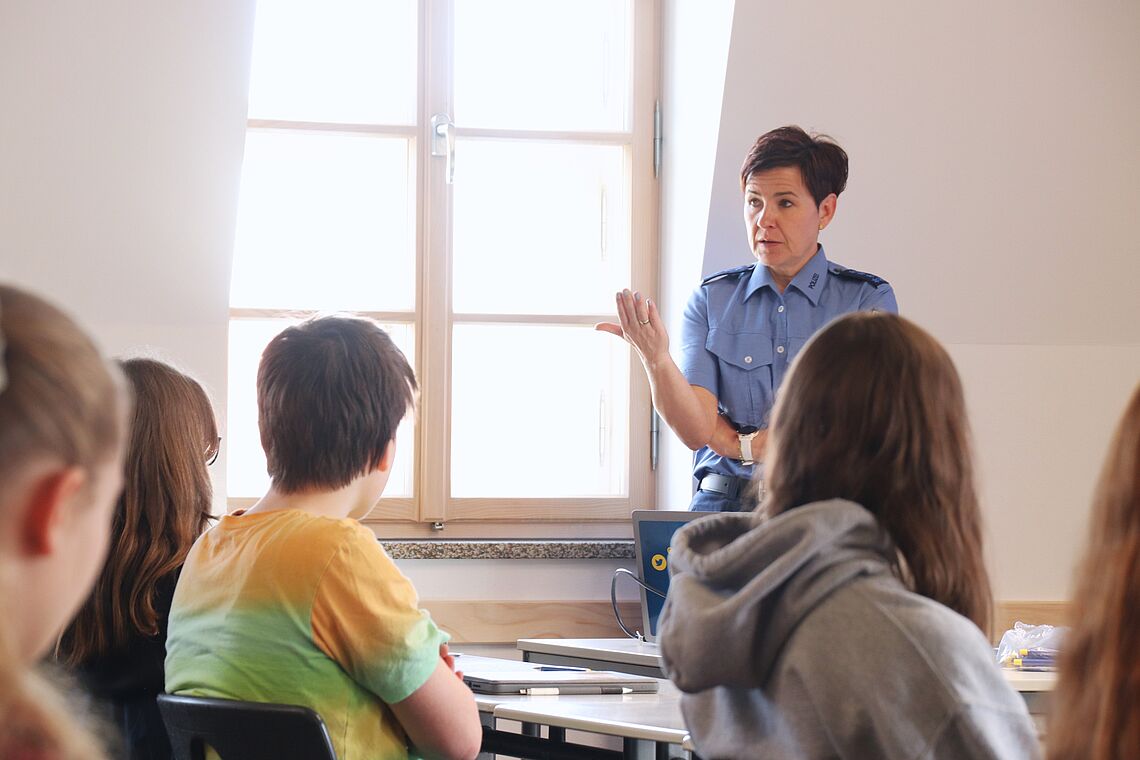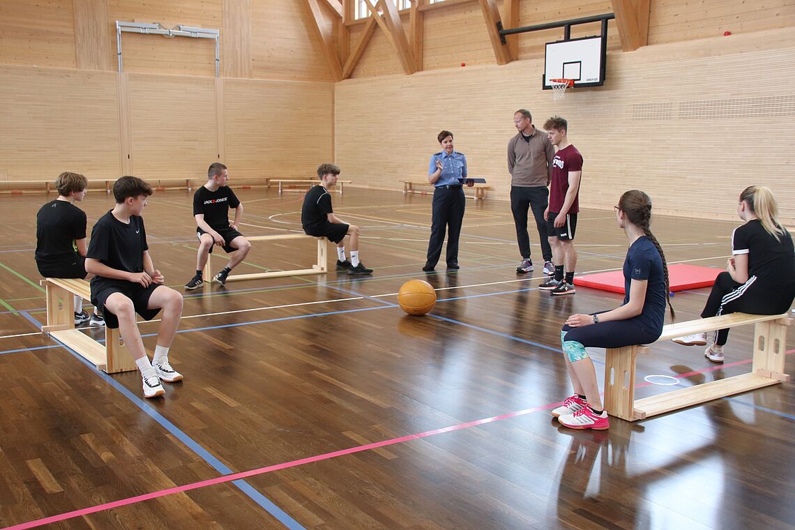 Im ersten theoretischen Teil ihres Berufsorientierungsprogrammes stellten zwei Polizistinnen Ausgangsvoraussetzungen, Ausbildungsmöglichkeiten und -inhalte sowie berufliche Perspektiven bei der Polizei vor. Nicht minder wertvoll waren die Schilderungen ihrer eigenen Erfahrungen, die sie während der Ausbildung und in ihren bisherigen Dienstjahren bei der Polizei gemacht haben.