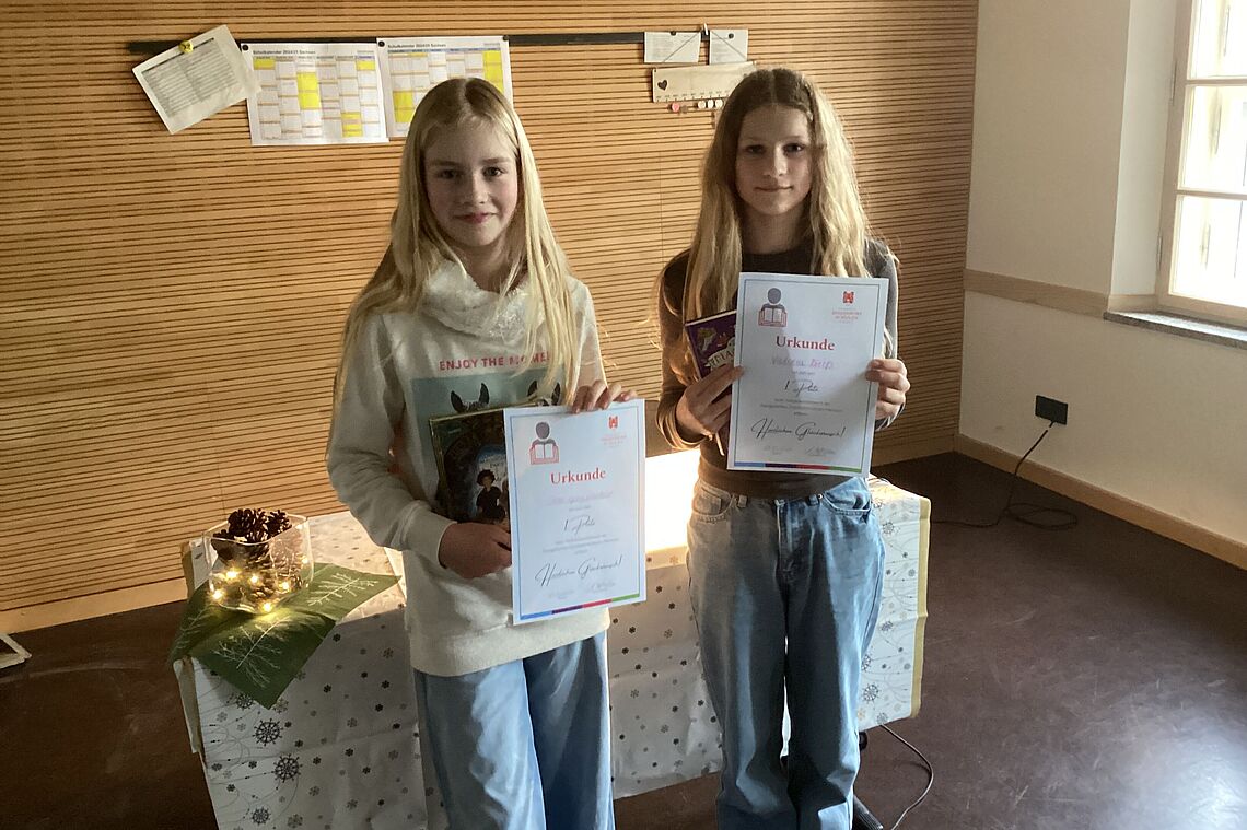 Beim Vorlesewettbewerb der 5-er und 6-er konnten die Teilnehmerinnen ihre Lieblingsbücher vorstellen und ganz nebenher zeigen, dass Vorlesen eine Kunst ist, die sie durchaus beherrschen. In der ersten Runde durften noch vorbereitete Texte vorgelesen werden, in der zweiten Runde mussten dann die Vorlesefähigkeiten bei unbekannten Texten unter Beweis gestellt werden.
