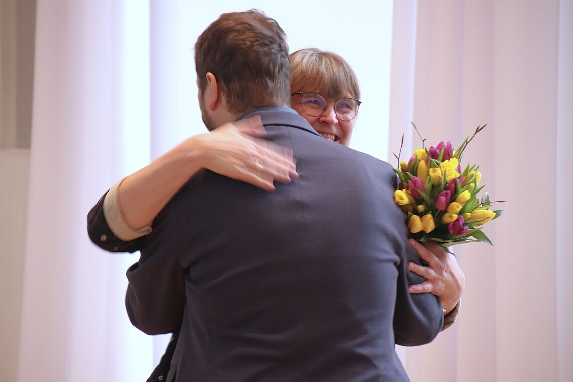 Mit Frühlingsblumen und einer Umarmung verließ sie das Schulleitungsamt, das jetzt unser ehemaliger Oberstufenberater, Lucas Glombitza, fortführen wird. Dieser erhielt ein Viel-Kraft-Paket für einen optimalen Einstieg in die Schulleitungsfunktion. Wir wünschen ihm dafür alles Gute und Gottes Segen! Bis zum Ende des Schuljahres wird Frau Bensch ihm und dem Schulleitungsteam beratend zur Seite stehen. Ihre offizielle Verabschiedung feiern wir am 10. April um 10 Uhr bei einem Gottesdienst im Kirchensaal.