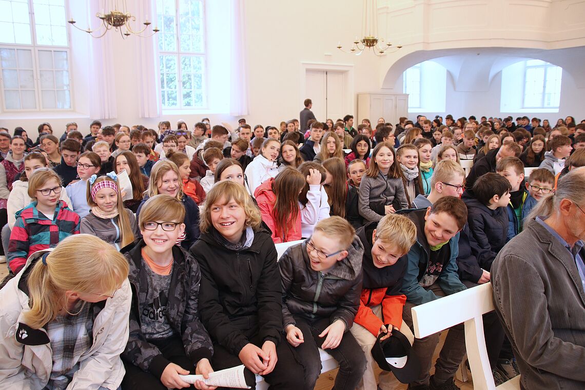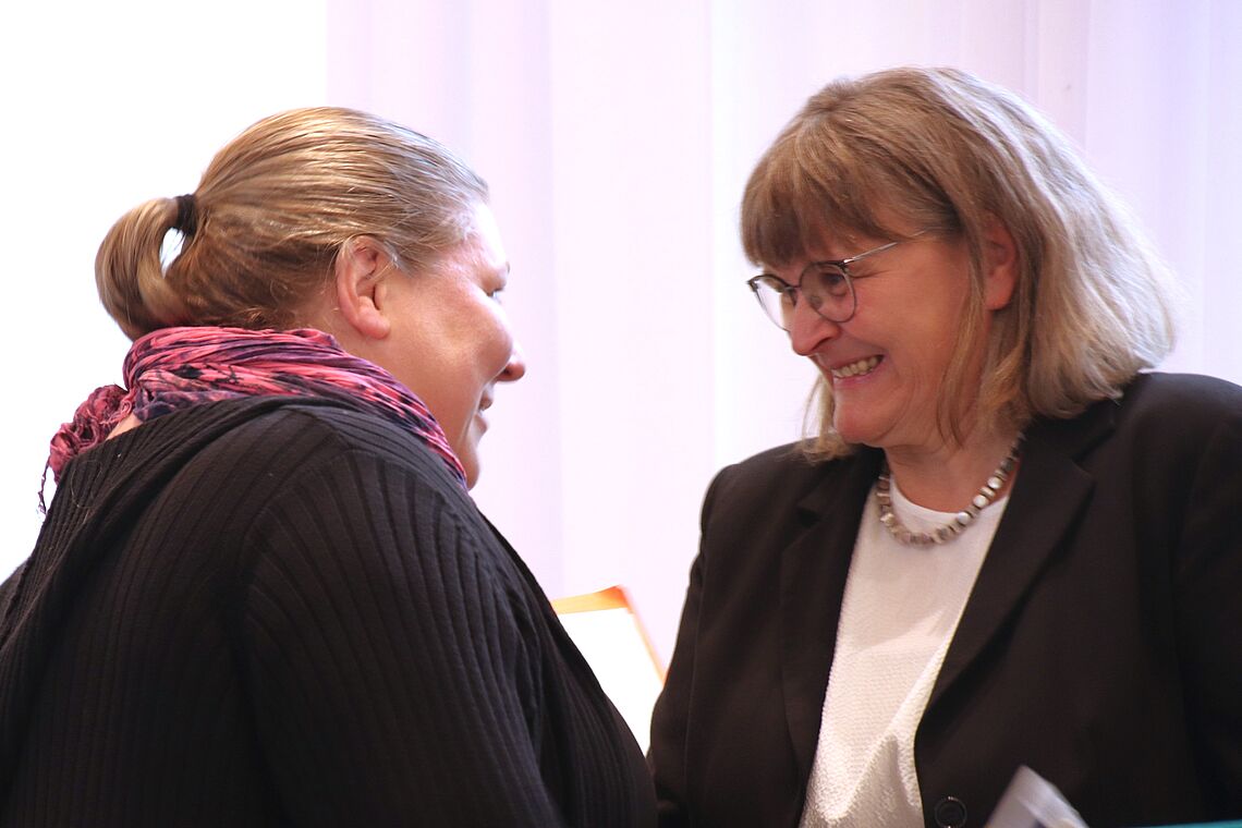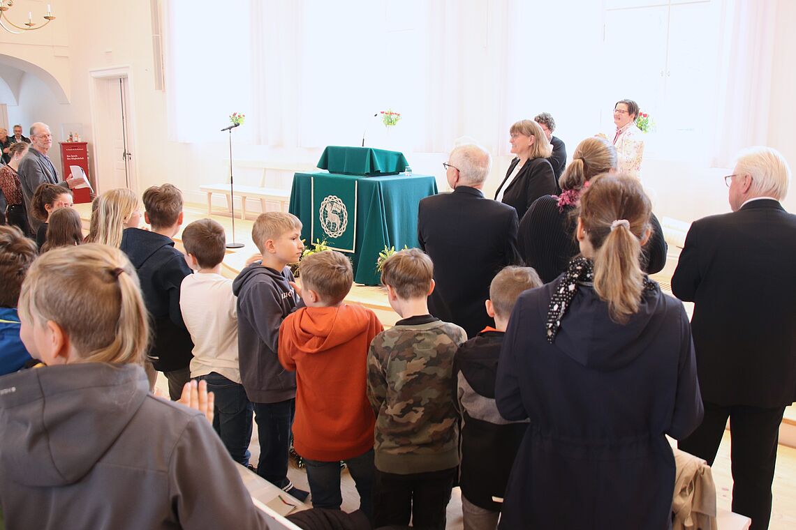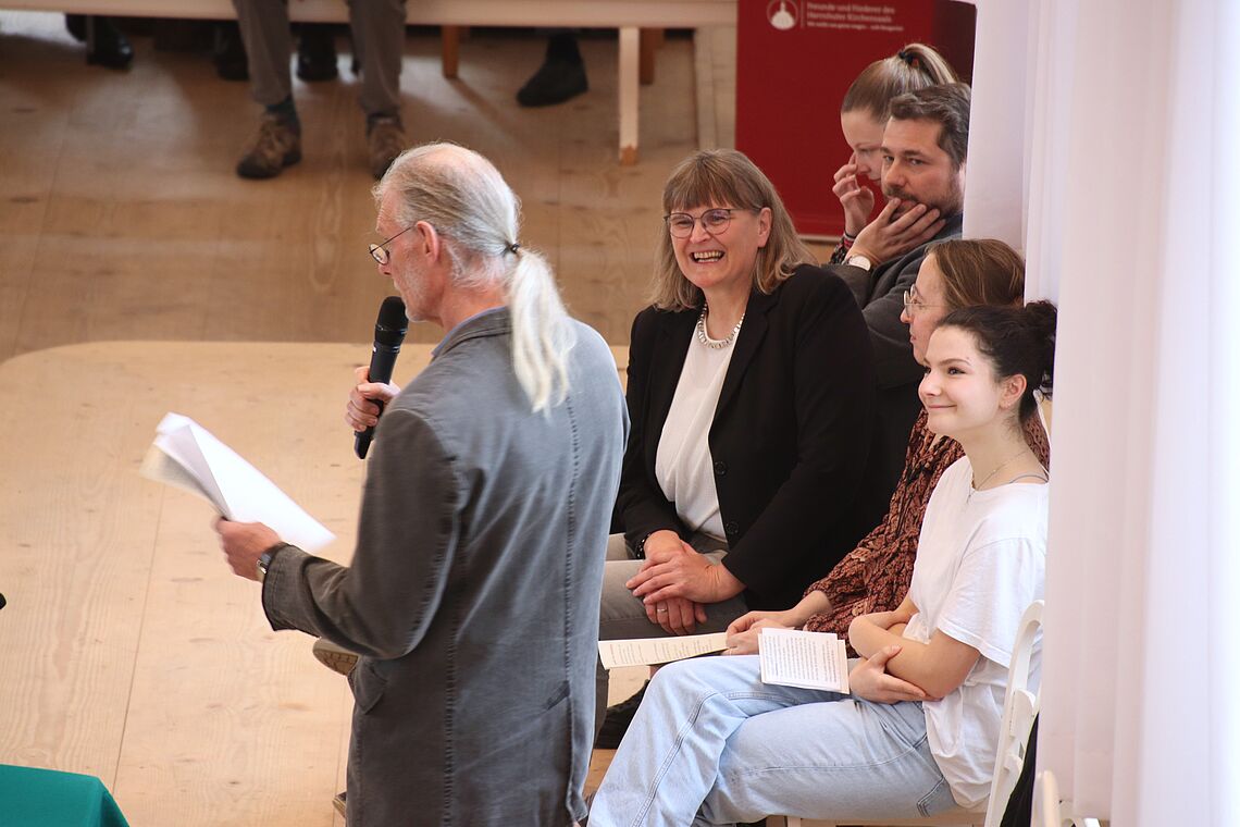 Auch andere Vertreterinnen und Vertreter der Schulgemeinschaft haben sich einen persönlichen Abschied nicht nehmen lassen. Die Grußworte der Kirchenleitung, der EZSH-Mitarbeitenden, der Schülersprecherinnen, der Elternvertretung, von Schulleiter Holger Böwing der Johann-Amos-Comenius-Schule und Pfarrer Peter Vogt der Herrnhuter Brüdergemeine würdigten Frau Benschs Engagement rund um die Schule. Sie dankten für ihre Leitung, die jahrelange Zusammenarbeit, die motivierende Stimmung und ihren positiven, humorvollen Umgang. Der volle Kirchensaal bestätigte das mit stehenden Ovationen.