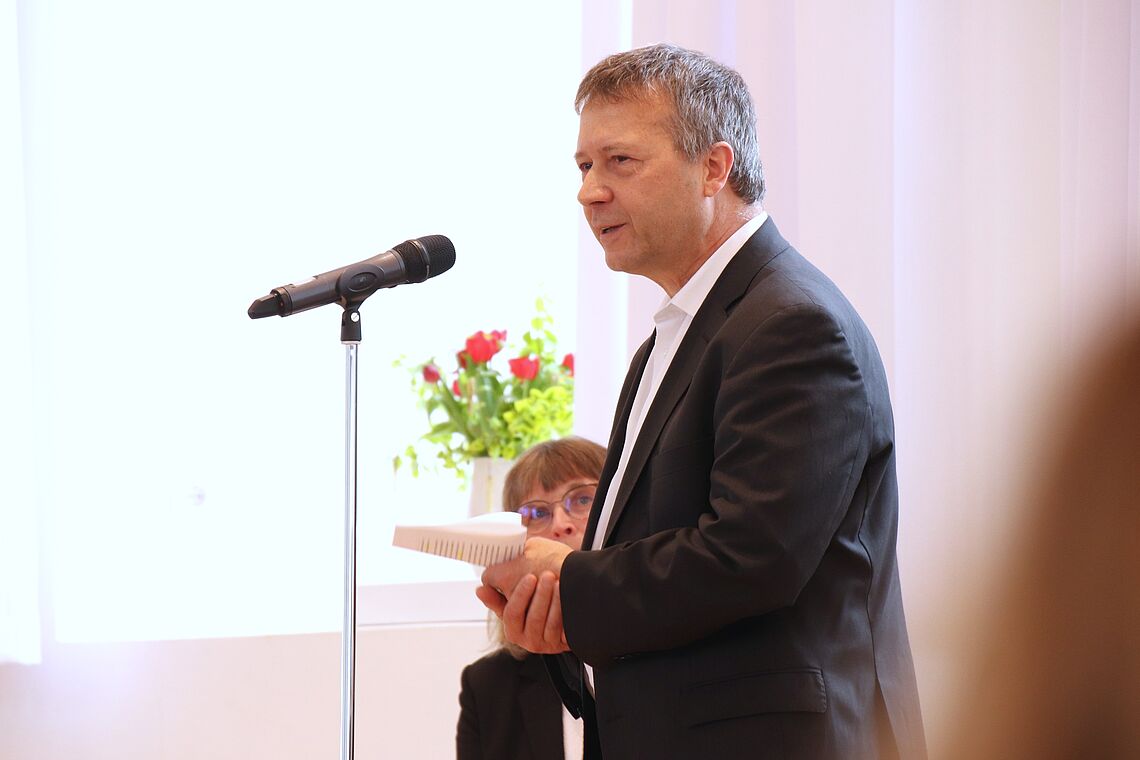Der Vorsitzende des Kuratoriums der Schulstiftung der Evangelischen Brüder-Unität, Pfarrer Klaus-Dieter Kottnik, entpflichtete Frau Bensch feierlich von ihrer Tätigkeit als Schulleiterin und segnete sie für ihren weiteren Lebensweg.