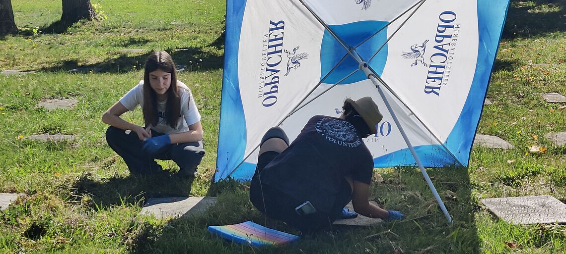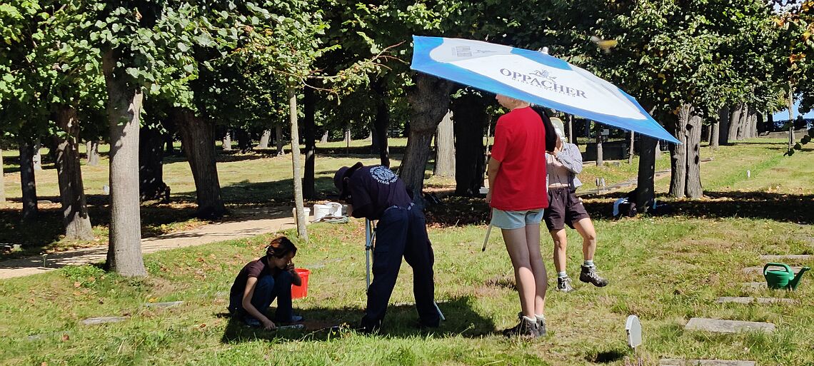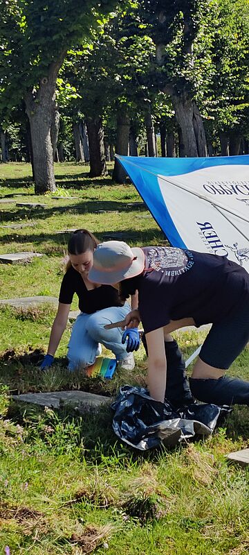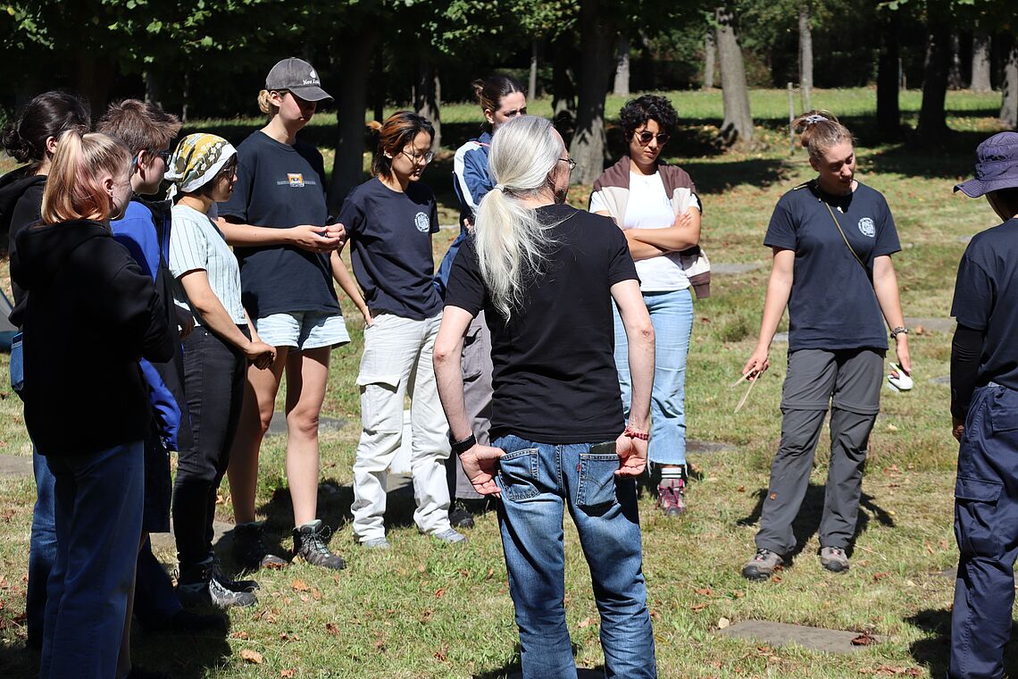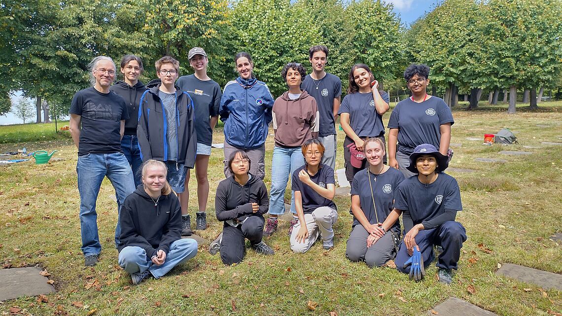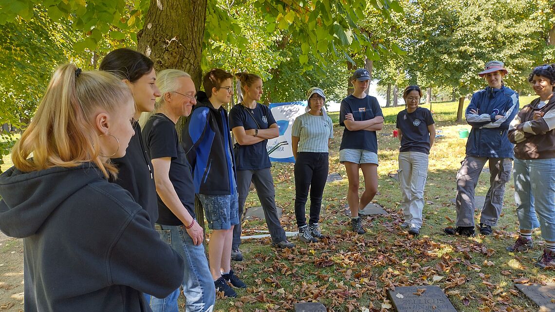 "Die am Thema UNESCO interessierten Schülerinnen besuchten am 04.09.2025 im Rahmen der „Bist-du-fit-Zeit“ die European Volunteers for World Heritage - eine Gruppe internationaler Studierender. Nach einer kleinen Vorstellungsrunde bekamen wir Handschuhe und Handwerkszeug und los ging die Mitarbeit unserer Schülerinnen auf dem Gottesacker.