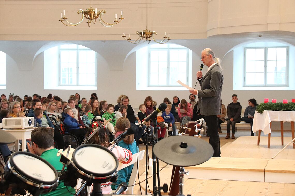 Schulleiter Holger Böwing von der Comenius-Schule verlas die Weihnachtsgeschichte, die untermalt wurde von vielen Liedern, die die Kinder, Jugendlichen und Mitarbeitenden beider Schulen gemeinsam sangen. Die Musik zu den Liedern spielte meistens die Schulband der JACS. Die Zinzendorfschulen trugen mit Musikstücken der BrassBand und des Schulchores zur Weihnachtsandacht bei.