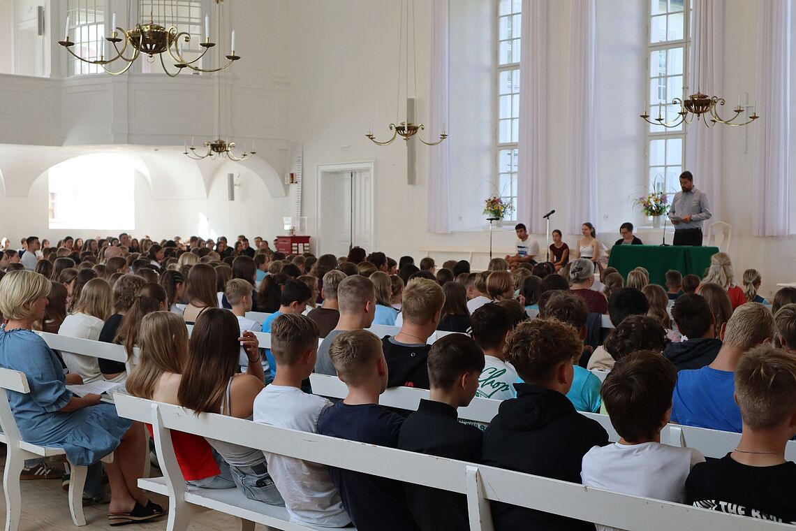 Mit einem gemeinsamen Schulgottesdienst wurde heute das neue Schuljahr an den ev. Zinzendorfschulen begonnen. Dieser Gottesdienst stand unter der Überschrift „Anfang und Abschied“. Und so beginnt heute für die drei neuen 5. Klassen eine spannende Reise an unserer Einrichtung. Traditionell wurden sie dabei von Schülerinnen und Schülern der 12. Klasse empfangen und mit einer kleinen Zuckertüte begrüßt.