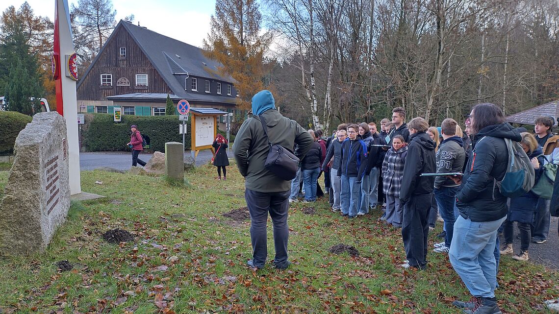 Eine besondere Geschichtsstunde führte unsere Grundkurse Geschichte der Klasse 11 gemeinsam mit Schülern aus Ceska Lipa ins Dreiländereck. Vor Ort erkundeten sie bedeutende Erinnerungsorte zum Ende des Zweiten Weltkrieges in der Region.
