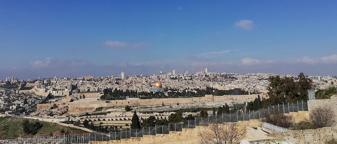 Auf einigen Ausflügen in die Umgebung wurde das Leben unter einer Besatzungsmacht spürbar und sichtbar. Um die komplizierte politische und gesellschaftliche Lage nicht zu einseitig zu sehen, war auch ein Besuch in Jerusalem vorgesehen. Dabei ging es neben einigen christlich-touristischen Zielen auch um die Begegnung mit Israelis und den Austausch über ihre Sichtweise der Situation. Auch die deutschsprachige Gemeinde mit Mitgliedern auf israelischer und palästinensischer Seite gehörte zum Programm. Für unsere Reiseteilnehmer war es wieder eine spannende, unvergessliche Bildungsreise.